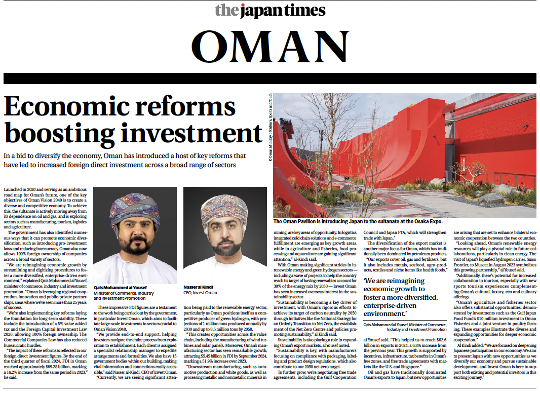 Позвольте нам провести вас через невероятные возможности, которые предлагает Оман. Вместе мы можем создать будущее общего роста и процветания.